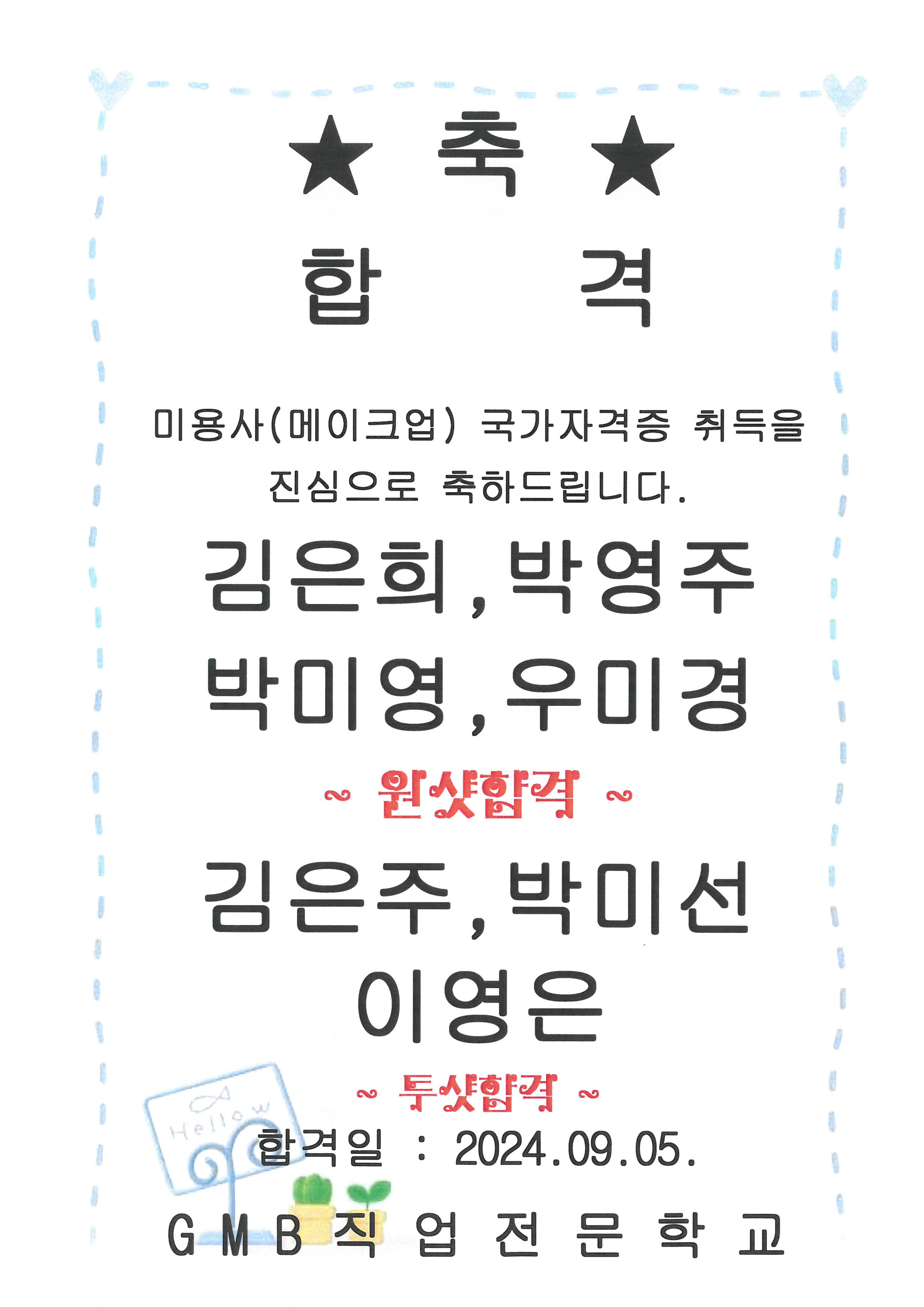 미용사(메이크업) 국가자격증 합격을 진심으로 축하해요~~