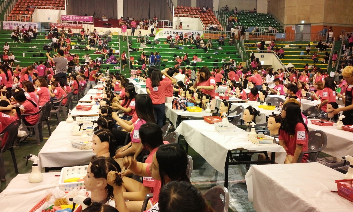 헤어,피부,메이크업,네일아트등 다양한 분야에 전체 천여명 가까운 학생들이 출전 했습니다.