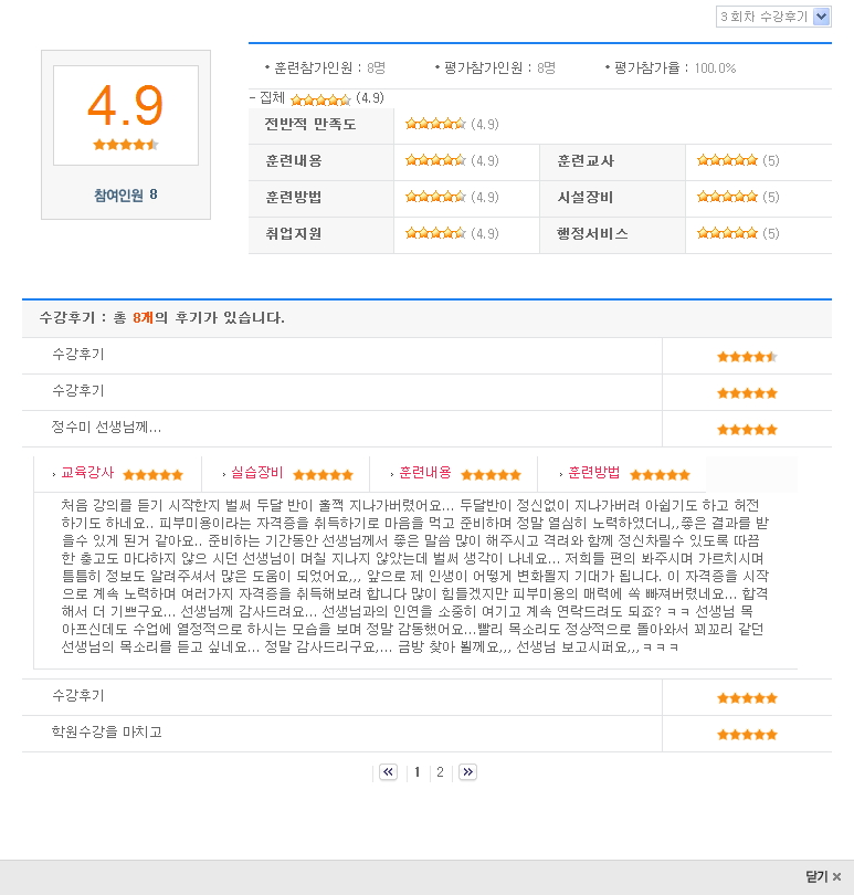 피부미용자격증반 수강평