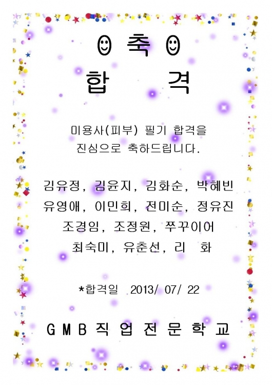 피부자격증 필기시험 합격을 진심으로 축하 드립니다^^(92% 합격)