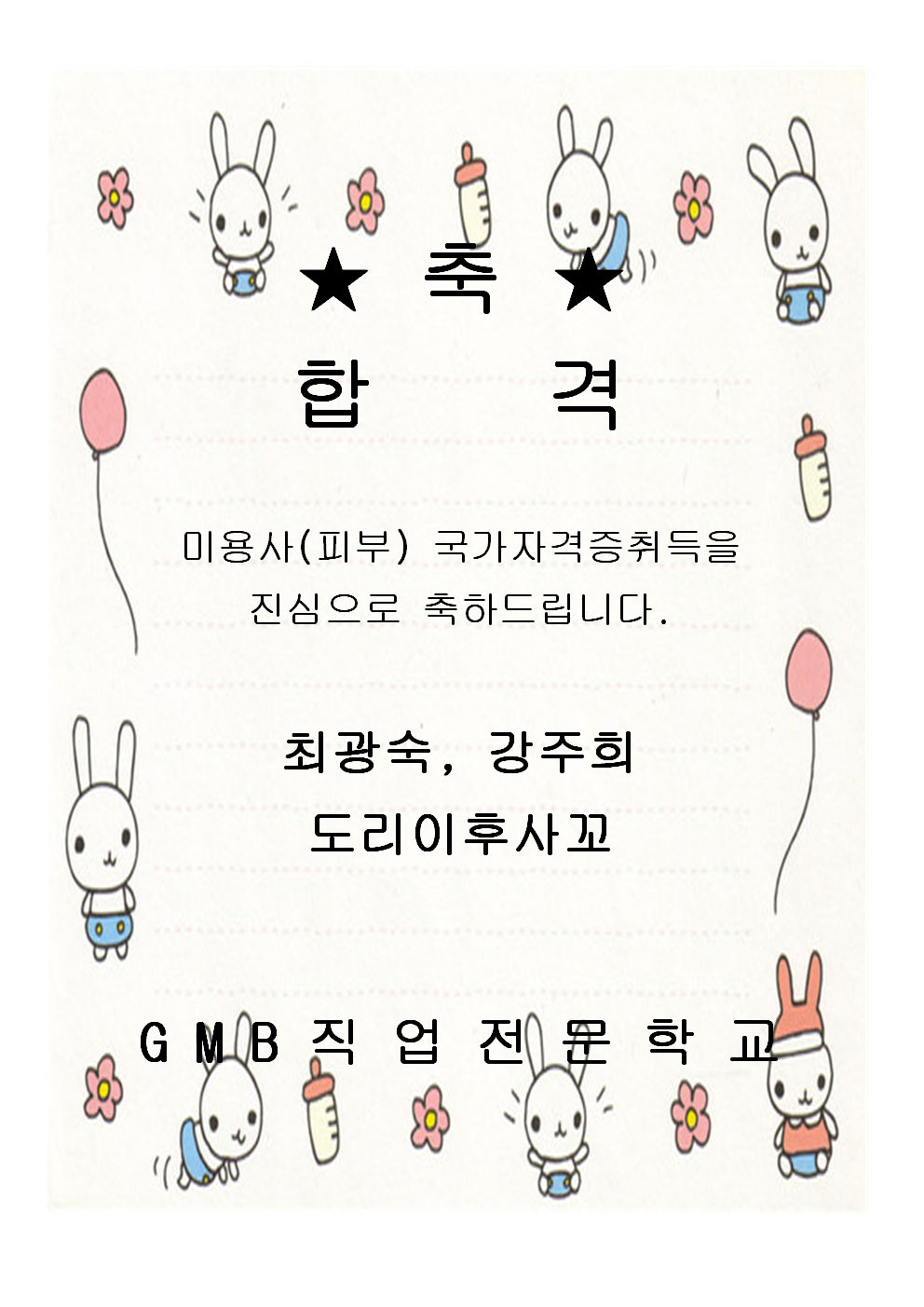 미용사(피부) 국가자격증 취득을 진심으로 축하드립니다~~~!!
