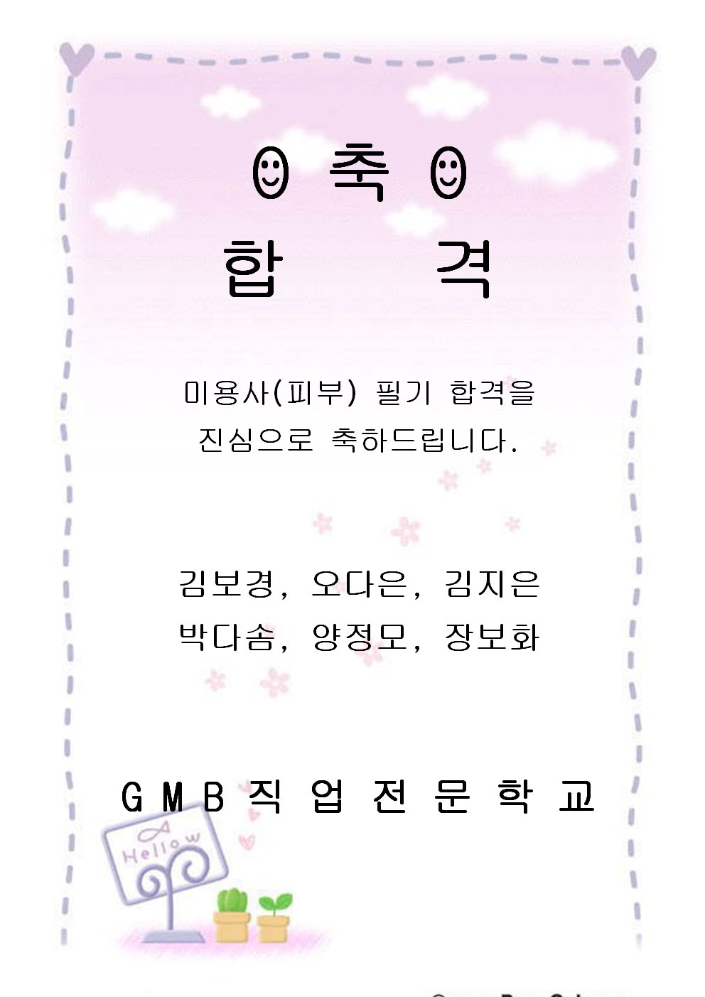 미용사(피부) 필기합격을 축하드려요~~~~!!