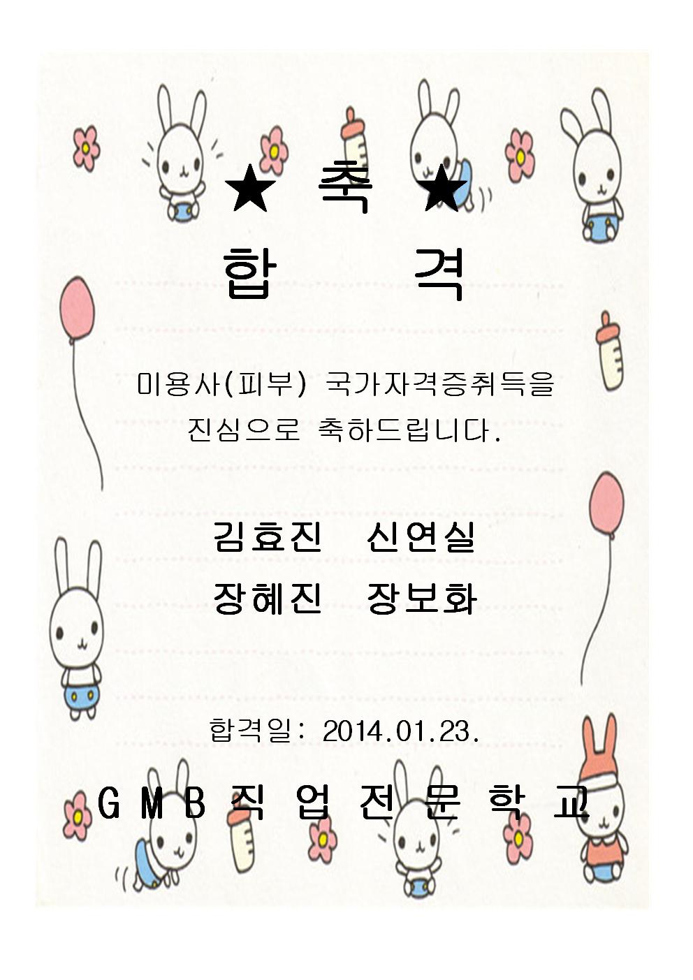 미용사(피부)실기합격을 진심으로 축하드려요~!!