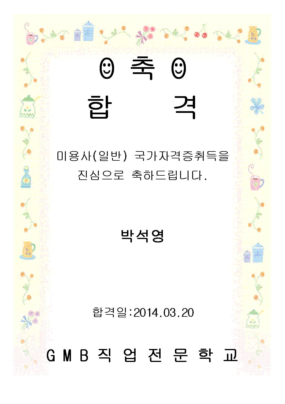 미용사(일반)국가자격증 취득을 축하드립니다~!!![]()