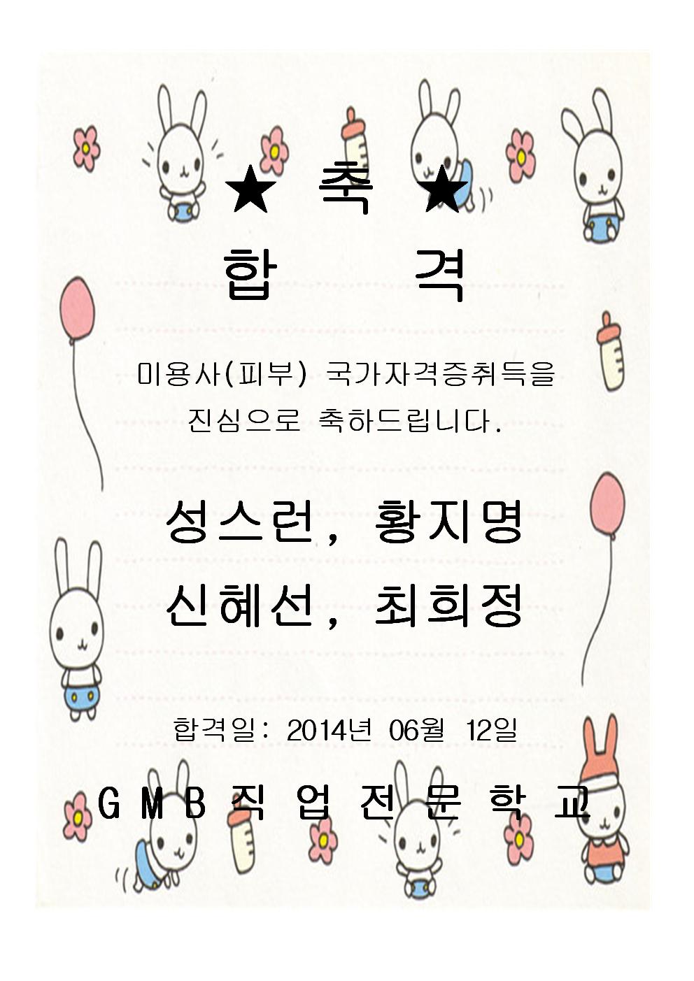 피부미용자격증 과정(11회차)을 수료하신 합격자 명단 입니다.