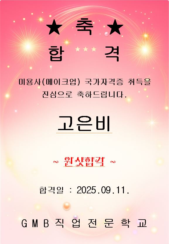 메이크업 국가자격증 취득 축하드려요~