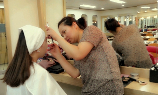 메이크업 실기를 배운후에 자격증 시험대비 모의시험 수업시간 입니다.